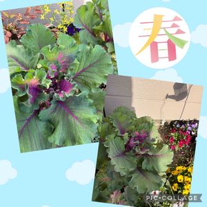 こんにちゎ(*´꒳`*)♡ 庭の葉ボタンが巨大化し別物に見えて来ました😆 でも色合いが良くこれも🆗かなぁ〜💜🍀💜🍀💜🍀💜🍀