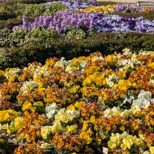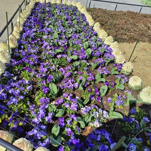 先月25日に撮っていた植物園花壇💛💜🤍🌿🌷 まだ咲いてなかったチューリップ🌷も咲き揃い外枠の葉牡丹も伸び切りモリモリで〜す