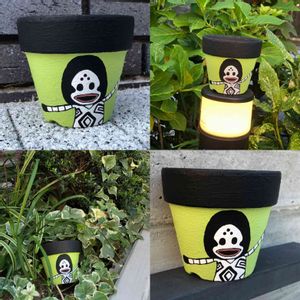 娘にダダのリメ鉢を書いて貰いました😆 鉢を持ってウロウロ撮影。 他人のオシャレなマンションのエントランスで撮しました📸 怪しい親子🤣🤣🤣