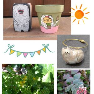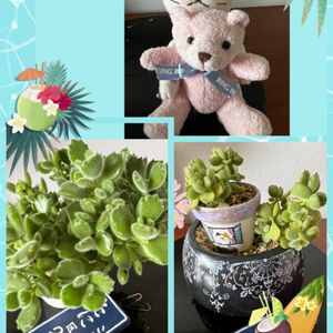 おはようございます😊 今日は貴重な晴れになりそう。 🏷️ニャンニャン祭りに参加します。 ①右下ネコ🐱と左下熊🐻です。どちらも調子が良さそうです。 peanyatsのリメ鉢と、まつぴよさんのソクニャン、ピーちゃんと、何かのおまけだったかな、🐻ちゃんと。 ②今年初のマツバボタン(たまちゃんからの)咲きました💕虫の穴!