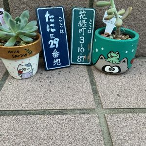 こんばんは(o´ω`o)ノ)) 1枚目 🏷るる かまぼこ板で繋がる輪 🏷Peanyatsの日 🏷Peanyatsリメ鉢 🏷おけけの日 ちょっと前に寄せ植えした多肉 ピンクの鉢の方、よく見たらおけけが出てました〜🤣 2枚目 Peanyatsの鉢を棚に戻そうとした時、もっとおけけが出た鉢発見 多肉の名前は日に当たり過ぎて不明😅 3枚目 🏷真っ赤な火曜日 ペコちゃん祭りでも投稿したニョロニョロ白檀さん、又1輪増えて4輪になりました〜😊 4枚目 🏷真っ赤な火曜日 月曜日、久しぶりに三輪神社さんへ 参拝してきました。 境内に山あじさいの「紅」が咲いて いて、縁がほんのり紅くなっていました。 🏷野菜キャラ 本日5月27日は語呂合わせで 小松菜の日だそうです。 最近買った小松菜は偶然にも 茨城県産でした、前に投稿した のもありますが💦 裏の生産者紹介の方が違う方でしたので再登場です😅 同じキャラですいません🙇♀️