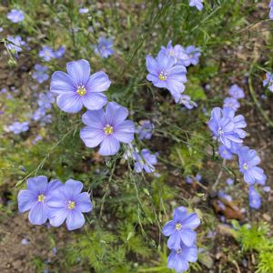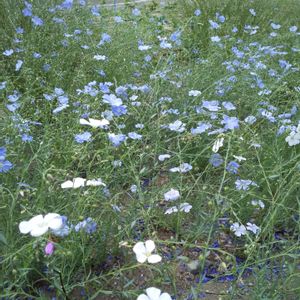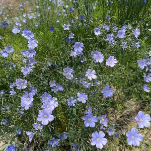 アマ フラックス アニュアル (あま科 一年草) 高崎市染料植物園 寒い地方が栽培敵地で茎の繊維はリネン製品となる。通気性、吸湿性に優れて肌触りが良いことから高級な衣類などになる。🌺