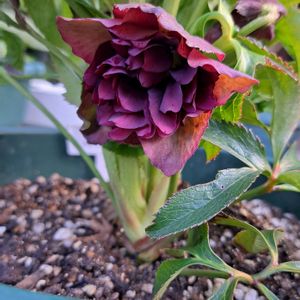 こんばんは😃🌃 我が家のクリスマスローズ開花No.1は、2年前の春にとっても小さな交配苗を購入した 「インソムニアダブル×ダーククレオパトラ」です💜✨ 次は多分「ピンクフロスト」かな? 昨年、クリスマスローズは全部無事に夏越しできたようで嬉しいです(๑˃̵ᴗ˂̵)و *♪💕