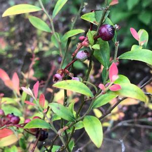 実がなかなか熟れないビルベリーです。 きれいな葉なんです。 やっと一粒黒くなってたのをお口へ、 スッパイわー これはやはり、あーするしかない🍷