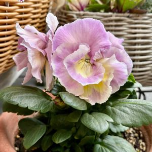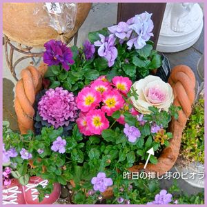 あけましておめでとうございます𝐻𝑎𝑝𝑝𝑦𝑁𝑒𝑤𝑌𝑒𝑎𝑟 今年もよろしくお願いします(´。•◡•。)ノ⚘*゚ 新年最初なのでなにかお正月🎍っぽいお花をと思って探したけど何もない(´▽`*)アハハ 唯一葉牡丹さんが入っているこの2つの寄せ植えがお正月🎍っぽいかなってことで🤭 ①②ときめきビオラのトワイライトヴェールさんとディアミッキーさんメインのときめき寄せ植え😋 ③~⑤パンジーのシュシュさんメインのカゴ🧺寄せ植え🌷🌸 このパンジーさん、よく利用するネットショップのプレゼント🎁パンジーさんなんですけど、本当にシュシュみたいでめっちゃ可愛いんです◝(⑅•ᴗ•⑅)◜..°♡