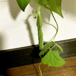 5年くらい前の豆、芽が出るのか試しに植木鉢の隅っこに埋めておいたら、ひょろーって芽が出て😅 そのまま放置していたらサヤインゲンがなっていました😅 ラッキー⁉️