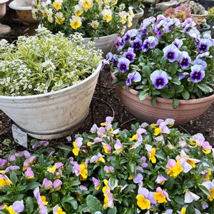 気がつけば4月ももう終わり…。自分の休みとお天気のタイミングが合わず、なかなか思うように園芸作業が進みません😢 とりあえず、マイペースでやっていけば良いかな!と思いつつ、植え付けの順番待ちの苗達がどんどん増えてまーす😂💦 pic①…ふんわり満開のブラキカム💜一緒に仕込んだチューリップは終わってしまいましたが、毎日元気一杯で咲いてくれてます🥰 pic②…原型を見失った寄せ植え。脇役だったアリッサムが見事なボリュームで主役の座を射止めました😂 pic③…デンドロビウム 今年も白い花達が可愛らしく咲いてくれました🤍🤍 pic④…昨年秋に植え付けたヒューケラチーム。 無事花も咲いて、リーフの彩りに毎日癒されます pic⑤…玄関に飾った花達💕 解体したビオラと植え付け待機中のカリブラコアそしてナデシコのミーテ。ちょこっとずつだけど、可愛い🥰💞