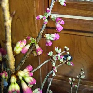 剪定した桜の枝を室内で水差ししました✌ 開き始めました🌸 一足早い春ですねo(*⌒―⌒*)o