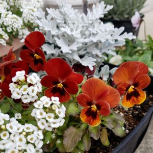 初めて寄せ植えを作ってみました🌿🌸🌱🌺 丸い鉢のほうがやりやすかった😅 何せ初めてなもので…まぁこんなものでいいか🤔