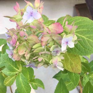 散歩中に見つけた〜 もう11月なのにあじさいが咲いていました。 四季咲きの品種のようです。 可愛い(*´-`)