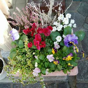初めて寄せ植えを作ってみました🌿🌸🌱🌺 丸い鉢のほうがやりやすかった😅 何せ初めてなもので…まぁこんなものでいいか🤔