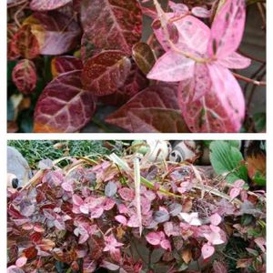 ヤブランと寄せ植えしてあるハツユキカズラ🌿🌿 恥ずかしがってるのかほろ酔い加減なのか😳 綺麗に紅葉しています🍂🍁