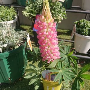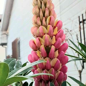 こんにちは☀️ ルピナス 天までとどけ🎵 ピンク色のトウモロコシみたいです🤭 車のドリンクホルダーに入れて持ち帰ってきました😁 初めて育てるのでよく分かりませんが、撮影後6号鉢に植え付けました😃 数苗買って、会社の花壇に植えるのも良さそうだな( *´艸`)