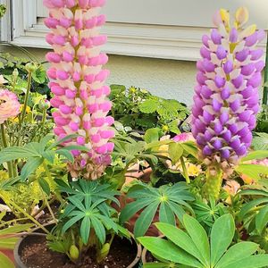 松阪フラワーセンターお迎え記録④ ↗️ルピナス 天までとどけ 毎年、松フラで購入しています💕 ↘️プリムラジュリアン 明るい黄色🌼の花、元気がでます😊 ⬅️右の購入品に、家🏠にポットのままおいていたピンクのジュリアンとビオラたちを一緒にinして寄せ植えにしました💕