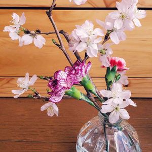 【定期】新しいお花をお迎えしました🌸 今日は彼岸桜を入れていただきました! 今、お花が高価になっているそうで、なかなか好きなお花をミニブーケに入れてもらうのは大変なようです💦