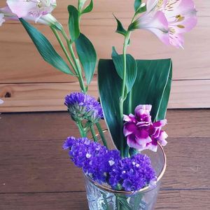 スターチスのお花が咲きました! 一度お花が見あたらなくなってしまったので、もうダメかなと思い茎を短くして日当たりの良いところへ飾ったら、もう一度お花が咲きました🌸 なかなか長持ちさせるのは大変ですが、こういう小さな変化が嬉しいです✨