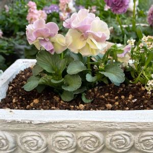 こんにちは😊 今日は、朝から小雨がパラパラと降ってます。ザーザー降りかと思ってましたが、意外と小降り…。でも庭仕事は出来ないので、新しい花が無いかと検索してました。 今日のpicは、先日お連れした八重咲きパンジー“フェアリーチュール“。 完全八重咲きって書いてあったけど…花びらがたくさんあるみたい。なんかパンジーと言うよりペチュニアみたいじゃないですか?緑がかった白が爽やかなパンジーです。今までのパンジーとは違うフリルが上品な感じで、ついついお連れしちゃいました◝(⑅•ᴗ•⑅)◜..°♡