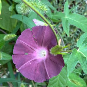 こんにちは☀️ 昨日、娘家族と夏休み最後の お食事会〜後、お兄ちゃん孫っちがお泊まり 森林公園に行きたいと言う希望でお付き合い お兄ちゃんの目的は🦎探しと虫標本と蜂🐝の巣観察 暑いから早朝に…と思っていたけれど館内が10時にならないと開かない💦 ちょっと早い目に散策しながら🦎探し… 赤ちゃん🦎にニホントカゲも見つけて満足〜蜂の巣はオオスズメバチが現れるのを待ちたかったようだけど現れず… 黄色スズメ蜂を見て帰ってきました😅 虫に関しては息子に任せて私はやっぱり植物が気になってキョロキョロ👀 何だか渋いお色の朝顔と何気に観ていたら幻の朝顔と🫢 江戸時代?からの「幻の朝顔、団十郎が咲きました」と書いてありました🤭 3鉢〜見事に咲いていました🤗 孫っちのお付き合いが無ければ見ることも無く…でしたがちょっと特した気持ちになって帰って来る事ができました😉🎶 他、出会ったお花達はまた後日に… 早い目の夕飯食べさせて お兄さん孫っちを送り届けます🚙