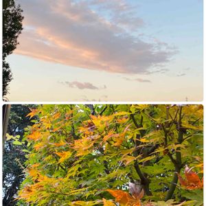 朝焼け (6時30分) : クジラのような大きい雲🤩 : 庭の紅葉🍁 もう少しです😍