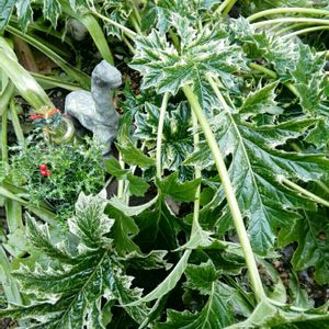 今日のお花アカンサス アカンサスホワイトウォーター 昨年初めて咲いたお花に嬉しくなりついずっと咲かせ続けてしまいました 夏を越したくらいで地上部が無くなり⭐️になったのだと思っていました 何せ今まで地上部が消えたのは初めての経験 今年の春見事に復活してくれました その代わりお花は無しです この時期限定の白い葉はお花が無くても十分に美しいです (*☻-☻*) 昨年のお花は⬇️🏷アカンサスホワイトウォーターから ご覧下さい