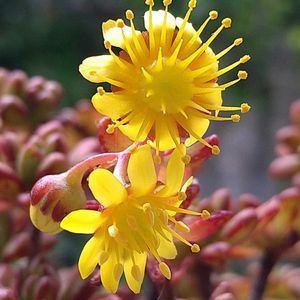 アエオニウム属 小人の祭り🏮👘✨ とうとう咲きました🥰 2つ咲きそうです🥰 花が咲くと株が枯れると言う話は?🤔 どうなんでしょうね〜🤔💦 3月に摘芯全部取ったんだけど、ぼぼ出て来てますね〜🥰 2つは出てくれないと意味ないですね〜🤣🤣 🏷かずの小人の祭り