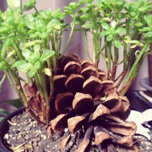 フォロワーさんとのリメ鉢交換で いただいたリメ缶☆ 鳥さん付いてたので 樹木みたいにみえる小人の祭りを メインに植えてみました(。 ー`ωー´)