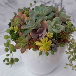 寄せ植え教室 皆さんの作品 2回目 初めての方も楽しんで可愛いのを作られました✨🍀 ネルソルなしです🎵 ↘️ 前回の仕立て直し 参加者作品 と言っても空いたところに残った苗を入れてあるだけですが😄