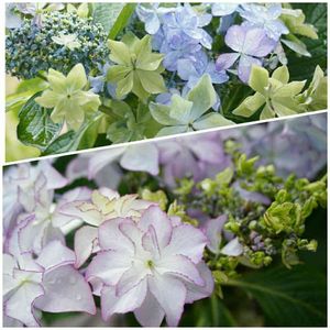 こんにちは~🌂 春にラックスで紹介した生産者さんの所で 紫陽花やダリアも生産販売していると聞き ゴールデンウイーク明けに行きお迎えした ガクアジサイ.レイ 両性花の周りにたくさんの装飾花が咲く半テマリ咲き どちらも素敵でピンクとブルー2株お迎え😍 (市販の半額なんです😁) 咲き進むと花びらがグリーンに変化して秋色紫陽花に✨😆 ブルーの方は既に秋色になってきています💙 お庭の紫陽花も色付いて来ました💓💙 今年はやはり早いですね しっとりと紫陽花の似合うお庭ですが そろそろお日様が恋しいです☀︎💜❤ 今日も穏やかな午後を~♡
