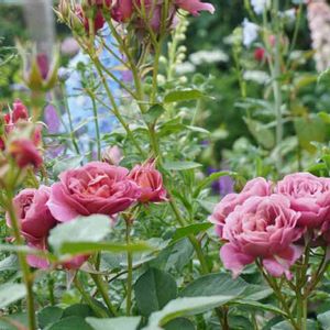 おはようございます⛅ テッポウムシ被害から復活したペレニアルブルー 4、5年ぶりに沢山のお花が咲いてくれました🎶 濃いめの紫からピンクに咲き進む色合いも 素敵です💓💓 奥にはちょこっとフランソワジュランビル 小輪房咲き 返り咲き 今日も穏やかな一日になりますようにε- (´ー`*)❤