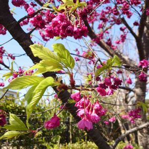 3/20㈯⑦ 右上 八重咲きの寒緋桜 左と右下 一重咲きの寒緋桜 寒緋桜は色合いがローズピンクで華やかなので遠目にも目立ちますよね。 八重咲きは世田谷松陰神社で、 一重咲きは今日地元の公園で撮りました😃💗🌸💗🌸💗 3/19㈮④にpicした緋寒桜は緋桜、台湾桜とも呼ばれます。寒緋桜と同じと書かれている記事もありましたが、うつむいて咲きませんし別の桜です。 ヒカンザクラ郡という大きなくくりの中のひとつが園芸品種の寒緋桜だそうです。総称としては寒緋桜(緋寒桜)はアリですが、緋寒桜=寒緋桜ではありませんでした🤓📖