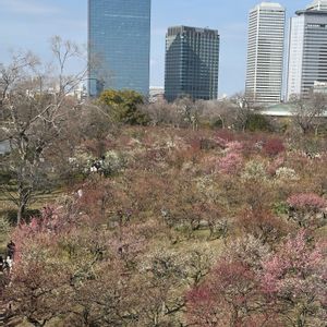 2月11日(月祝) 大阪城公園梅林にて その3 1.7haに105種類1245本の梅 大阪ビジネスパークのビルも見えます。 なかなか素晴らしい都会のオアシスです~🎵