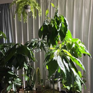 ジャングルみたいなアボカド。 帰宅すると育成ライトに照らされた新芽が鮮やかで美しい✨ 今年は植え替えて、育成ライト導入、葉水と肥料をちゃんとあげるようにしたら過去最高の成長ぶり。 いつか収穫できるといいな〜
