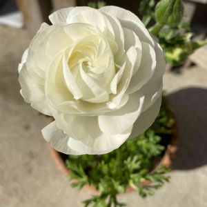 白いラナンキュラスを買って帰りました。 今からもう枯らしそうで心配ですが💦 何とか長持ちしてもらえるように🙏 とりあえず、鉢に植え替えました。