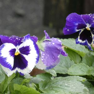 「パンジー」 雨上がりのプランター。 🏷水滴の水曜日 🏷彩月(いろどりづき)の青い花2025