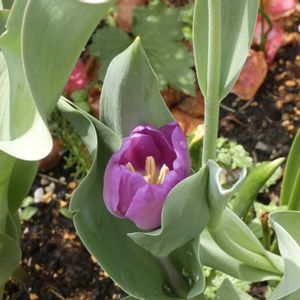 「チューリップ🌷」 昨日蕾を投稿したこちらのチューリップは、今朝、咲き始め紫系のお花の様です。 🏷咲き始めのお花たち