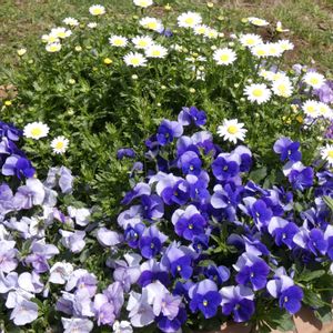 「ビオラたち」 ずっとテラス置きで育てています。 いつの間にか、葉っぱたちが成長して盛り上がりこんなにも元気いっぱい。 🏷(祝)かねーちゃん6000pic. 🏷春爛漫の青い花2025 🏷青い小さな花を写そう!2025
