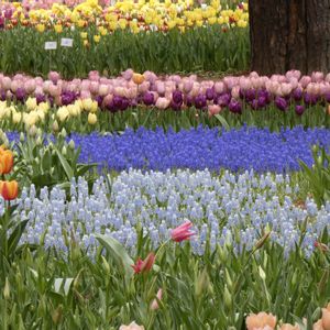 「チューリップ・ガーデン」 *国営ひたち海浜公園* 昨日訪れました。昨年は、残念ながら全く咲き終わり茎だけが残っていた時でしたので、早々リベンジ☝️✨しました。五分咲きらしくまだ咲いていない種類もありましたが、見応えありでしたよ。ムスカリたちも素敵に咲いてました。 平日でしたので、幸い園内は空いていました。 🏷カラフルな火曜日 🏷青い小さな花を写そう!2025 🏷春爛漫の青い花2025