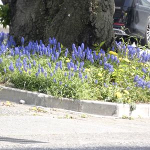 「ムスカリの群れ」 巨大な桜の木の根元には、沢山のムスカリ。 🏷青い小さな花を写そう!2025 🏷春爛漫の青い花2025