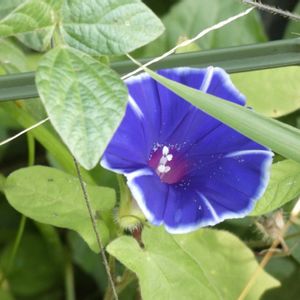 「アサガオ」 今朝、一つ咲いていました。 7月頃から咲き始めて殆どタネになってしまいましたが、久し振りに出会えました。 🏷彩月(いろどりづき)の青い花2025