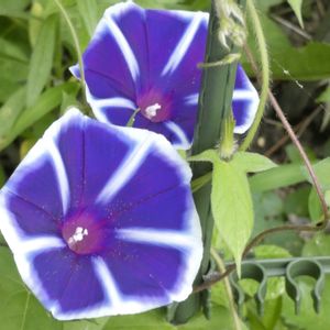 「アサガオ」 昨日の朝のお花たち。 最近、2つ並んで咲いている事が多い。 🏷青い花で夏祭り2025