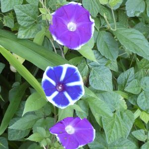 「アサガオ」 昨日の朝、咲いていたお花たち。 良く見ると紫系のお花もあります。 🏷青い花で夏祭り2025