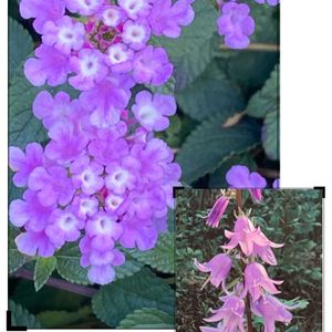 花旅の出会いから☆*:.。. 素敵ブルー💙💜&可愛いピンク🩷 《スライドpic》 ①カンパニュラ・トラケリウム 別名・籠手桔梗(コテギキョウ) イラクサ葉桔梗 ヒゲギキョウ 初めての出会いです💓🔔 ②イワシャジン ③ゲラニウム・ロザンネイ ④ヒメフウロ ⑤カライトソウ
