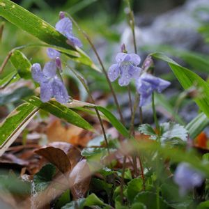 雨の日に林芙美子記念館で見つけたタチツボスミレ🩵 葉をよく見ると… アカフタチツボスミレですね😂 🏷水曜日は水色