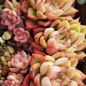 【エケベリア属 メビナ】 Echeveria 'Mebina' 和名 女雛(めびな) 流通名 【エケベリア属 スターライト】 Echeveria 'Starlite' Echeveria 'Starlight'? 寄植えのセンターの ネームタグは【メビナ】🏷 日本で出来たアガボイデスの 交配種という説があるが、 花が咲かないため 同定が出来ないそうです 普及種でありながら 作出者不明、出自不明の謎多肉 ☆Source☆ 【羽兼直行氏 著書】