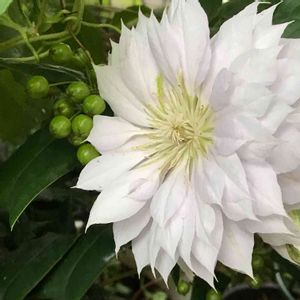 クレマチスとクリスマスホーリーの実 クレマチスこれまたタグが無いのでお名前わかりません💦クリスマスホーリーにちゃんと実がつきました❣️嬉しい😆