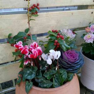 久しぶりの投稿😅 今年も登場しました、クリスマスホーリー。今年は実が多い!けど、葉っぱが寂しい😭 シクラメンと葉牡丹の寄せ植え。クリスマスからお正月まで楽しめる❤️