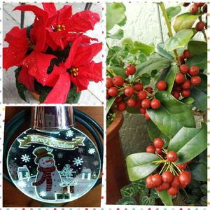 ポインセチア スノーマン飾り物 光が点滅します。 クリスマスホーリー 冷えたから赤さもました感じです。 しばらくしたら鳥から食べられます。😥