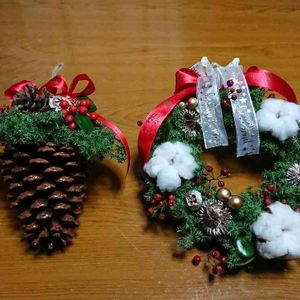 今日は☔ 買い物も止めて、朝からクリスマスリースをワンコと戦いながら2つ作りました。 材料はまだ有るのでスワッグも作ってみます😊 *ヒムロスギ*クリスマスホーリー*コットン*スターアニス*ノバラ*松ぼっくり…