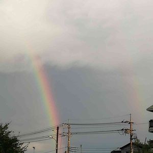 陽が上った直後に虹🌈しかも二重に・・・暫くすると雲が無くなり🌈の橋が掛かりました~お見事でした 朝焼け、虹🌈を見る事が出来てラッキー😆💕