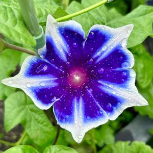 こんにちは 西洋朝顔 スノーフレーク 青紫と白のコントラストが美しい朝顔です💙💜🤍 零れ種から咲いてくれました𓂃𓂂◌₊˚ˑ𓆸 ꕤ︎︎·͜·(*´˘`*)♡ウレシイ!